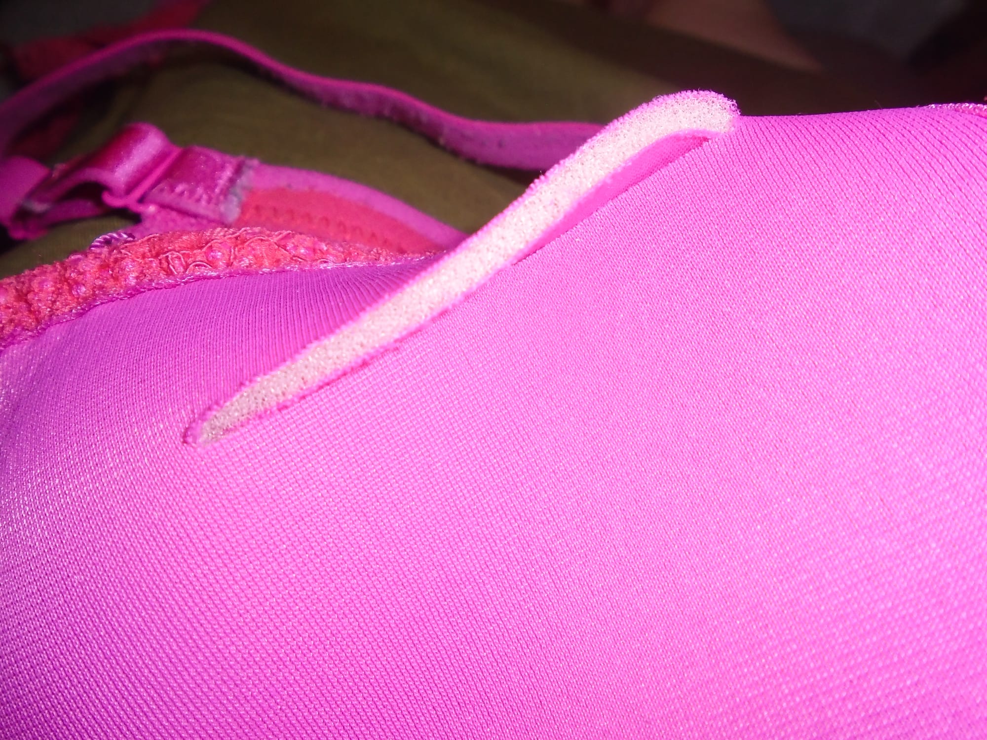 The inside of the cups is made from a smooth ultrafine synthetic jersey (so fine that you have to look very hard to see that it is a knitted fabric) with a very light layer of padding which seems to be integral to the fabric (further investigation proved that it is). The seams are firmly taped for comfort.